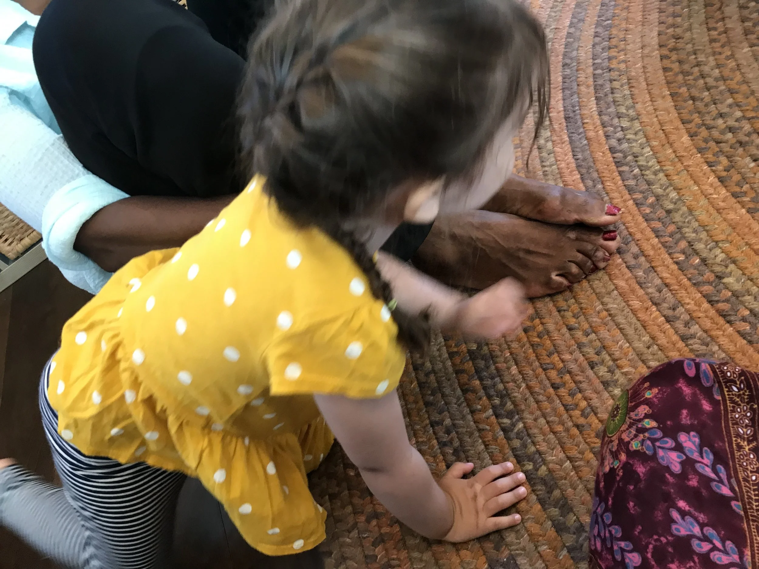 /We were treated to a very special guest today! My beautiful friend Kariann (of 30+ years) is in town visiting from Vermont with her family. She asked is she could spend some this morning with us and offered to give us an acting class experience. First we stretched and warmed up our bodies and then our voices. Next we pretended to be frogs, giraffes, elephants, and snakes. We howled like wolves and growled like tigers. We learned to project our voices (not too much of a challenge) and move our faces like fish. We had a blast.